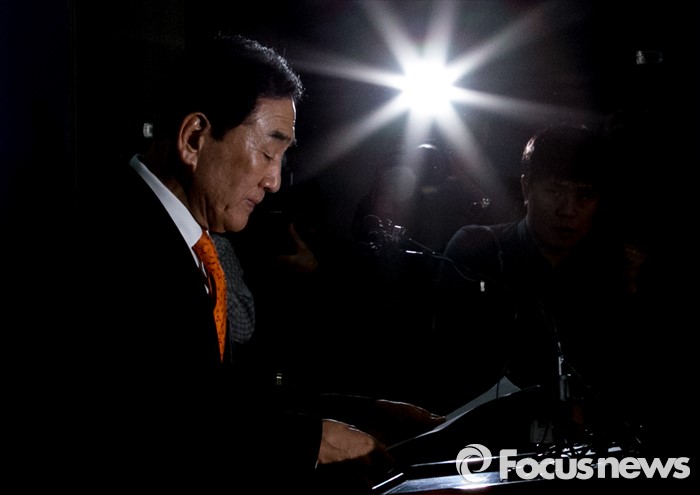 (서울=포커스뉴스) 새누리당을 탈당한 이재오 의원이 24일 오후 서울 여의도 국회 정론관에서 20대 총선 무소속 출마 기자회견을 하고 있다.