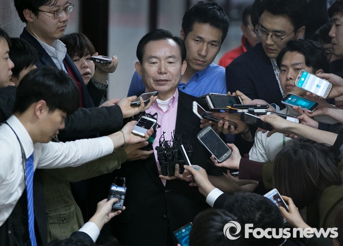 (서울=포커스뉴스) 김무성 새누리당 대표가 유승민 의원 지역구를 포함 5개 지역에 대한 최종 의결 거부하고 부산으로 떠난 24일 오후 서울 여의도 국회에서 열린 비공개 최고위원 간담회에 이인제 최고위원이 참석하며 취재진 질문에 답하고 있다.