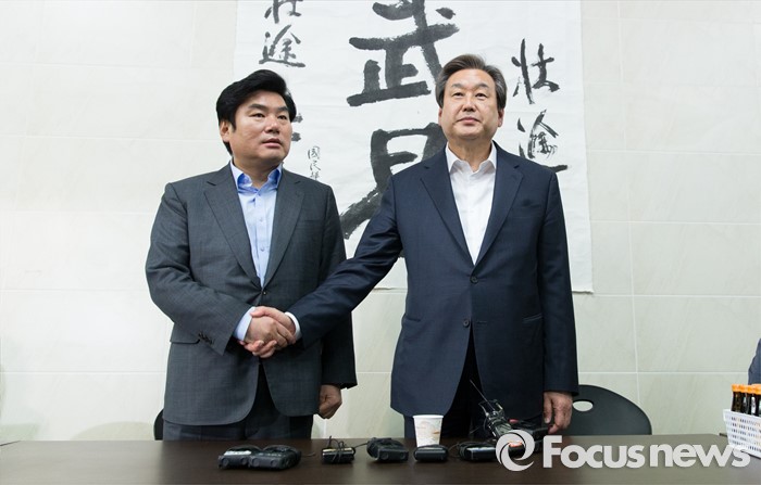 | △ 악수하는 김무성과 원유철 |