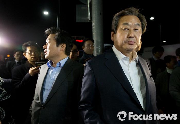 (부산=포커스뉴스) 당 공천관리위원회의 공천안에 반발해 최고위원회의 소집을 거부한 김무성(오른쪽) 새누리당 대표와 설득에 나선 원유철 원내대표가 24일 오후 부산 영도구 김 대표 사무실에서 만난 뒤 자갈치시장으로 향하고 있다.