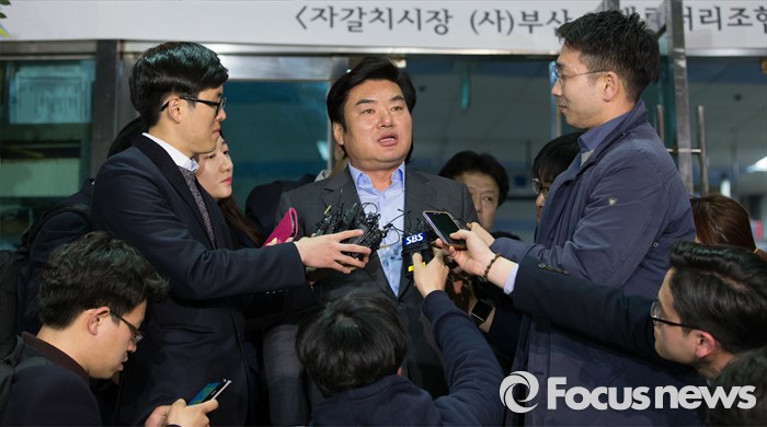 (부산=포커스뉴스) 24일 오후 부산 중구 자갈치시장에서 원유철 새누리당 원내대표가 당 공천관리위원회의 공천안에 반발해 최고위원회의 소집을 거부한 김무성 대표를 찾아 저녁식사후 취재진 질문에 답하고 있다.