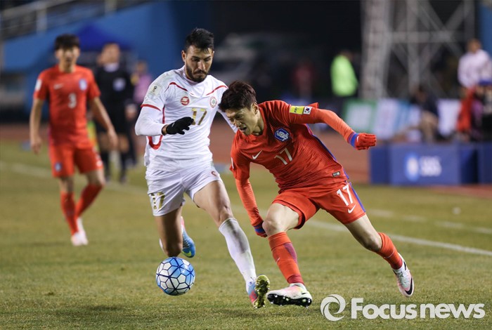 (안산=포커스뉴스) 24일 오후 경기도 안산 와스타디움에서 열린 2018 러시아 월드컵 아시아 2차 예선 7차전 대한민국 대 레바논 경기에서 이청용 선수가 드리블을 하고 있다.