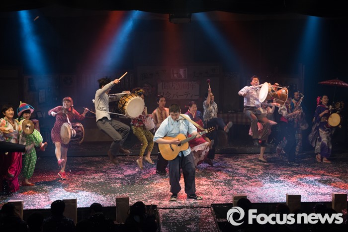 (서울=포커스뉴스) 24일 오후 서울 왕십릭역 광장 특설무대에 설치된 텐트극장에서 한·일 연극 공동 프로젝트 일환으로 열린 '백년, 바람의 동료들' 연극에서 일본극단 신주쿠양산박 단원들이 멋진 무대를 선보이고 있다.