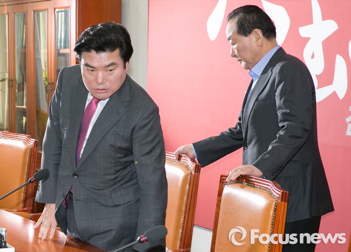 (서울=포커스뉴스) 원유철(왼쪽) 새누리당 원내대표와 서청원 최고위원이 25일 오전 서울 여의도 국회 원내대표실에서 열린 최고위원회 간담회에 입장하고 있다.