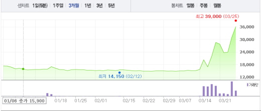 팀스의 발행주식수는 200만주로 시디스가 40.58%의 지분을 가지고 있다. 계열사인 바로스 15.15% 등을 포함하면 본인 및 특별관계자의 지분율이 총 60.72%에 이른다. 이외 자사주 보유 물량 15.03% 등을 제외하면 유통 물량은 24.22% 밖에 되지 않는다.주가흐름<사진출처=네이버 캡쳐>