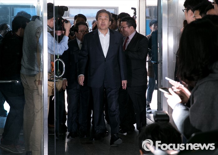 (서울=포커스뉴스) 김무성 새누리당 대표가 당 공천관리위원회의 결정에 반발해 유승민 의원 등 지역구 6곳에 대해 무공천을 선언해 갈등이 이어지고 있는 25일 오전 서울 여의도 당사로 김 대표가 들어서고 있다.
