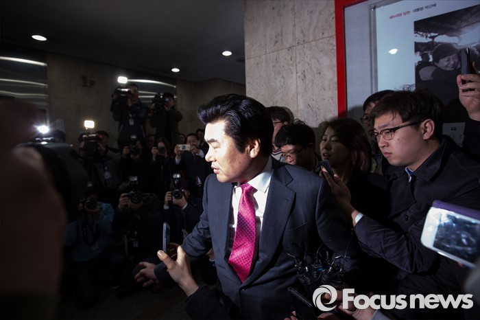 (서울=포커스뉴스) 이른바 진박 후보 공천장에 도장 못찍는다며 김무성 새누리당 대표의 '옥새투쟁'이 이어지고 있는 25일 오전 서울 영등포구 새누리당사 앞에서 원유철 새누리당 원내대표가 최고위원회의에 참석하기 위해 이동 하고 있다.