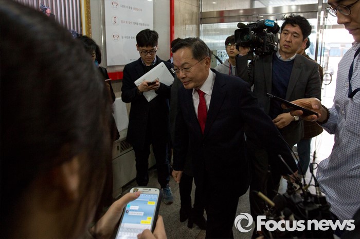 (서울=포커스뉴스) 이른바 진박 후보 공천장에 도장 못찍는다며 김무성 새누리당 대표의 '옥새투쟁'이 이어지고 있는 25일 오전 서울 영등포구 새누리당사 앞에서 안대희 새누리당 최고위원이 회의에 참석하기 위해 이동하고 있다.