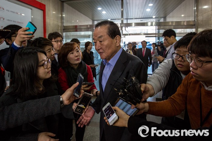 (서울=포커스뉴스) 이른바 진박 후보 공천장에 도장 못찍는다며 김무성 새누리당 대표의 '옥새투쟁'이 이어지고 있는 25일 오전 서울 영등포구 새누리당사 앞에서 서청원 새누리당 최고위원이 회의에 참석하기 위해 이동 하고 있다.