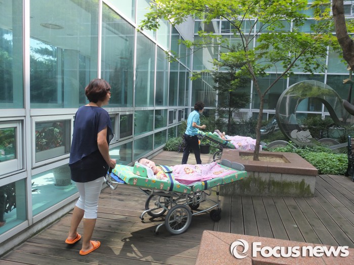 환아들은 주 1~2회 병원내 야외정원, 베란다 등에서 산책하게 된다.