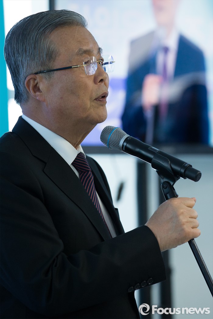 (용인=포커스뉴스) 김종인 더불어민주당 비대위 대표가 25일 오후 경기도 용인시 표창원 후보 선거사무소 개소식에 참석해 축사 하고 있다.