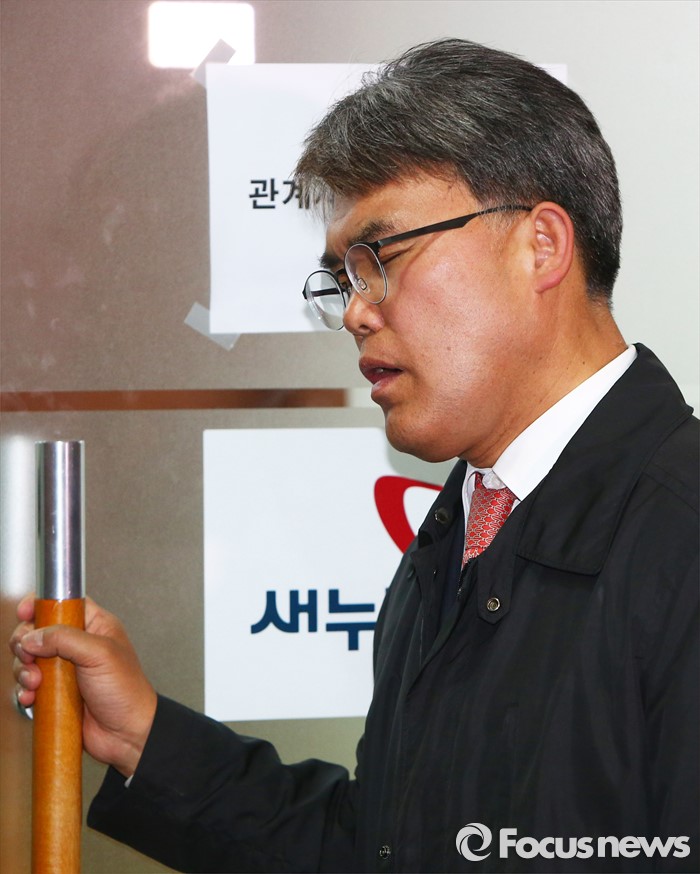 (서울=포커스뉴스) 이재만 새누리당 대구 동을 예비후보가 25일 오후 서울 여의도 당사 회의장 입구에서 최고위원회의 무공천 결정에 대해 항의하고 있다. 이날 새누리당 최고위는 정종섭(대구 동갑), 추경호(대구 달성), 이인선(대구 수성을) 후보의 공천을 확정했으며, 유영하(서울 송파을), 이재만(대구 동을), 유재길(서울 은평을) 후보는 공천 의결 보류를 확정했다.
