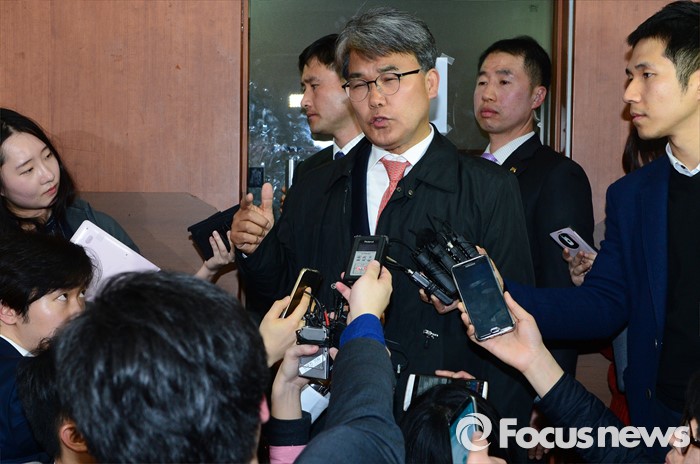 | △ 취재진에게 입장 전하는 이재만 후보 |