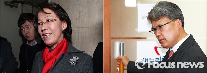 (서울=포커스뉴스) 새누리당 지도부가 25일 오후 서울 여의도 당사에서 비공개 최고위원회의를 열고 정종섭(대구 동갑), 추경호(대구 달성), 이인선(대구 수성을) 후보의 공천을 확정하고 유영하(서울 송파을), 이재만(대구 동을), 유재길(서울 은평을) 후보의 공천 의결 보류를 확정했다. 사진은 이날 회의 결과 발표 후 희비가 갈린 이인선(왼쪽 사진), 이재만 예비후보.