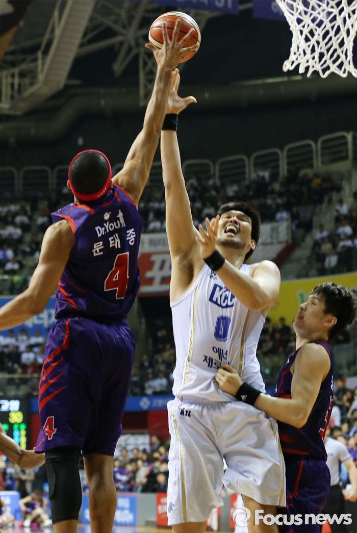 (고양=포커스뉴스) 25일 고양체육관에서 열린 2015-2016 프로농구 챔피언결정전 4차전 오리온-KCC경기에서 오리온 문태종이 KCC 하승진의 슈팅에 블로킹을 시도하고 있다.