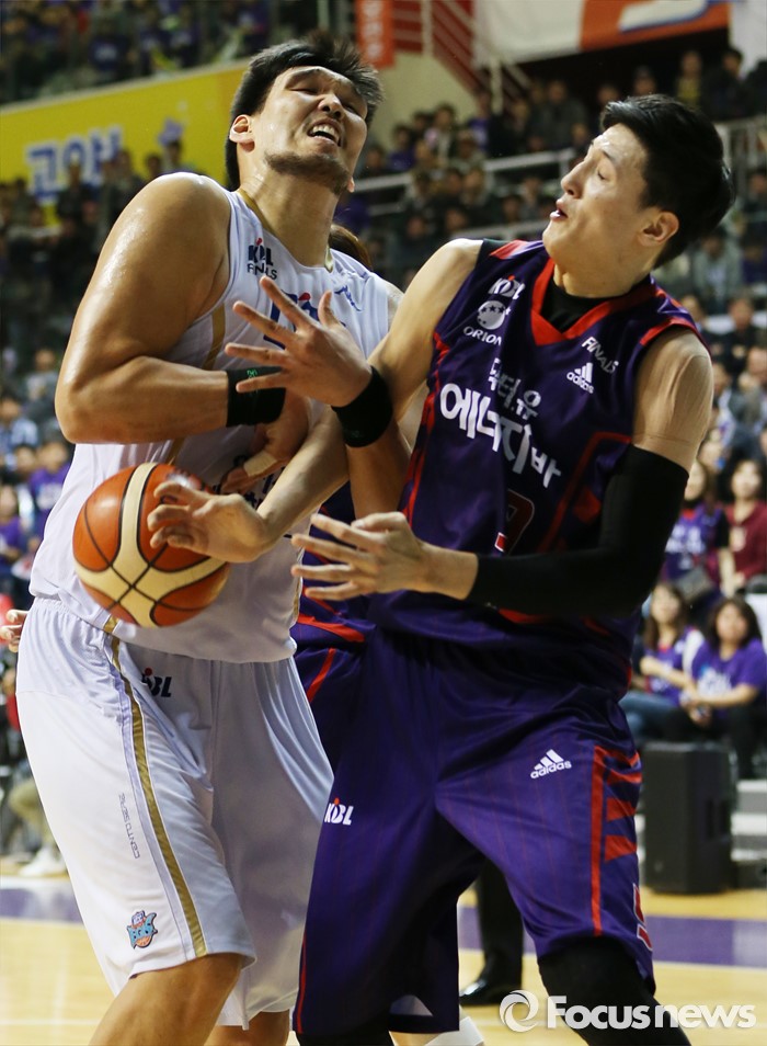 (고양=포커스뉴스) 25일 고양체육관에서 열린 2015-2016 프로농구 챔피언결정전 4차전 오리온-KCC경기에서 KCC 하승진과 오리온 최진수가 바운드된 볼을 다투고 있다.