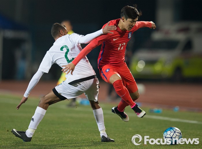 (이천=포커스뉴스) 25일 오후 경기 이천종합운동장에서 열린 KEB하나은행 초청 올림픽대표 대한민국과 알제리의 친선경기에서 후반전 한국 구현준이 상대 선부를 피해 드리블을 하고 있다.