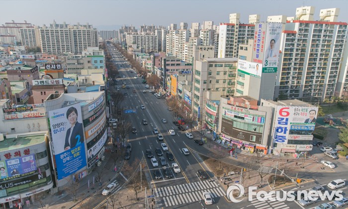 (광주=포커스뉴스) 야권의 호남쟁탈전이 벌어질 것으로 예상되는 20대 총선을 보름여 앞으로 다가온 26일 오후 광주 서구 풍금사거리에서 각 정당 후보들의 선거사무소 현수막이 보이고 있다.