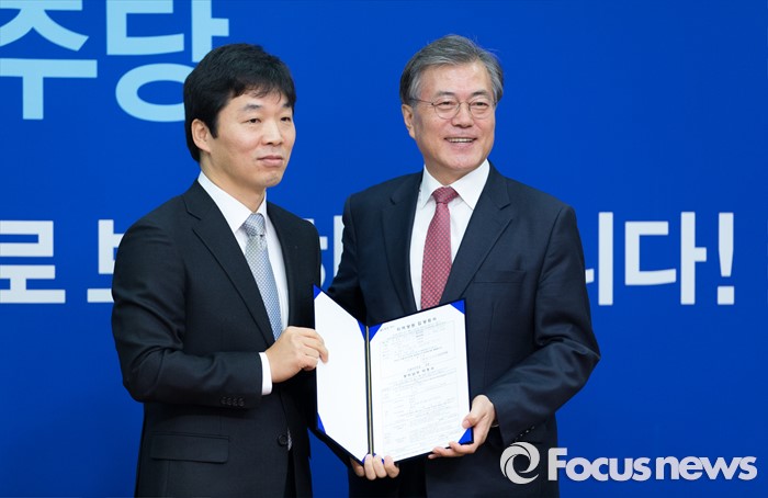 이에 앞서 문재인 전 대표는 26일 또다른 영입인재인 조응천 전 청와대 공직기강비서관의 경기도 남양주갑 선거사무소 개소식에 참석해 "박근혜 정부 3년간 국민 대부분의 삶이 나빠졌다면서 여당 심판과 야당 지지를 호소했다.문재인 더불어민주당 대표가 3일 오후 김병관 웹젠 이사회 의장으로부터 지역당원 입당원서를 전달 받고 있다. 2016.01.03 김인철 기자
