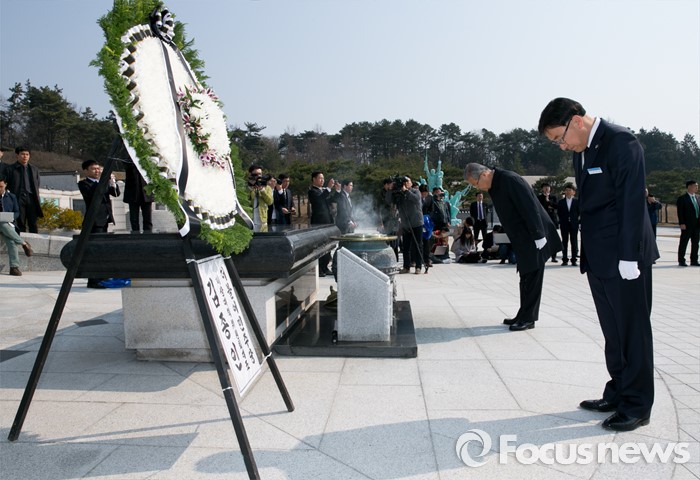 (광주=포커스뉴스) 김종인 더불어민주당 비대위 대표가 27일 오전 광주 북구 국립5·18민주묘지를 방문해 20대 총선 전남 및 광주지역 후보들과 함께 참배를 하고 있다.