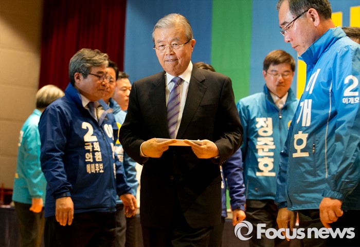 (광주=포커스뉴스) 김종인 더불어민주당 비대위 대표가 27일 오전 광주 서구 김대중컨벤션센터에서 더불어민주당 경제살리기 광주·전남 20대 총선 후보자 연석회의를 마친 뒤 후보들과 함께 이동하고 있다.