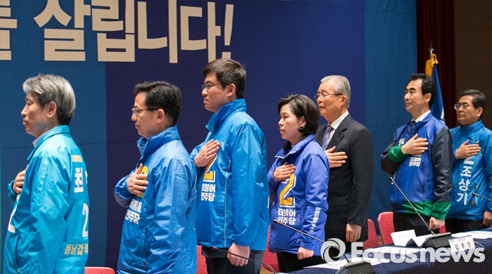 | △ 국민의례하는 김종인 대표와 호남 총선 후보들 |