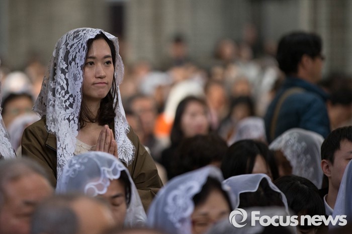 (서울=포커스뉴스) 부활절을 맞아 27일 정오 서울 중구 명동성당에서 열린 '예수 부활 대축일 미사'에 신도들이 참석해 있다.