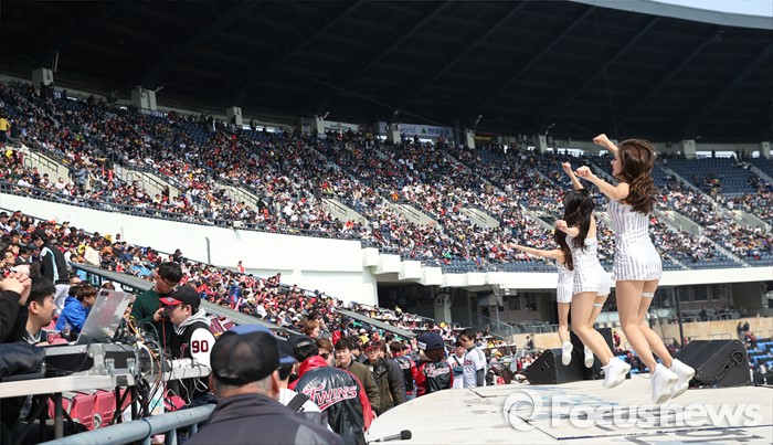 (서울=포커스뉴스) 3월의 마지막 휴일인 27일 프로야구 시범경기 두산-LG 전이 열린 서울 잠실구장을 찾은 많은 시민들이 화창한 봄 날씨를즐기고 있다.