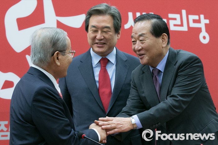 27일 기준 계약서에 서명한 인물은 김무성 대표, 원유철 원내대표, 손수조, 안대희, 이준석 후보 등 총 20명이다.(서울=포커스뉴스) 김무성(가운데) 새누리당 대표가 23일 오전 서울 여의도 국회에서 열린 최고위원회의에 참석해, 강봉균(왼쪽) 공동선대위원장과 서청원 최고위원의 악수를 보며 웃고 있다. 2016.03.23 박철중 기자