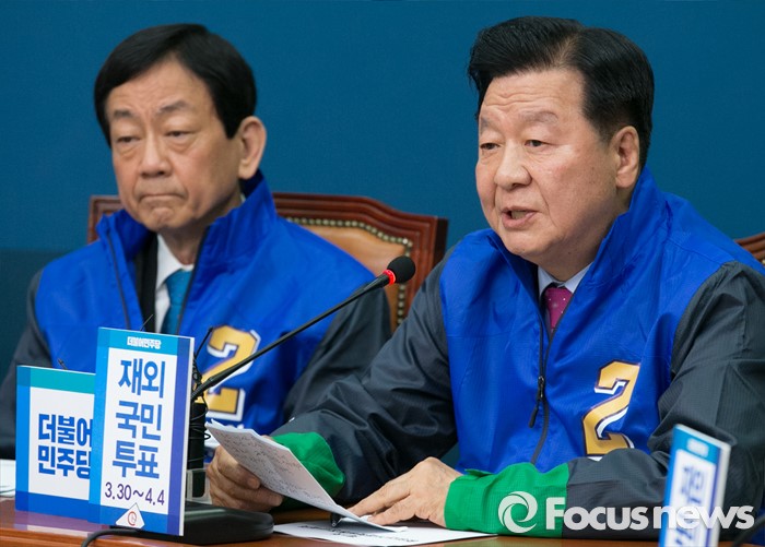 (서울=포커스뉴스) 이근식 더불어민주당 선대위 부위원장이 27일 오전 서울 여의도 국회에서 열린 중앙선거대책위원장단회의에 참석해 발언하고 있다.