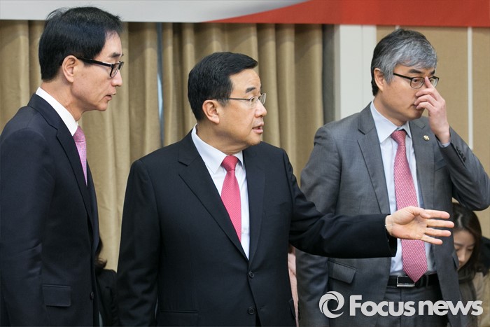 이날 당정협의회에는 새누리당 김정훈 정책위의장·류지영 의원, 정부 측 이준식 사회부총리 겸 교육부 장관, 이영 교육부 차관 등이 참석했다.김정훈(가운데) 새누리당 정책위의장과 이준식(왼쪽) 사회부총리 겸 교육부 장관, 이영 교육부 차관이 28일 오전 서울 여의도 국회에서 열린 누리과정 등 교육현안 관련 당정협의에 참석해 대화하고 있다. 2016.03.28 박철중 기자