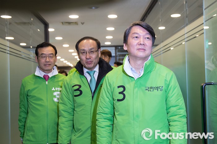 (서울=포커스뉴스) 안철수 국민의당 상임공동대표(오른쪽)와 선거대책위원들이 28일 오전 서울 마포구 당사에서 열린 선거대책위원회의에 참석하고 있다.