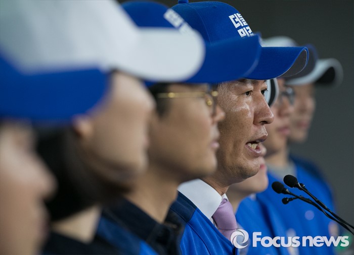 (서울=포커스뉴스) 더불어민주당에서 공천 탈락한 정청래, 김광진, 장하나 의원과 김빈 청년 비례대표 후보, 이동학 예비후보 등으로 구성된 '더컸유세단'이 28일 오전 서울 여의도 국회 정론관에서 출범 기자회견을 하고 있다.