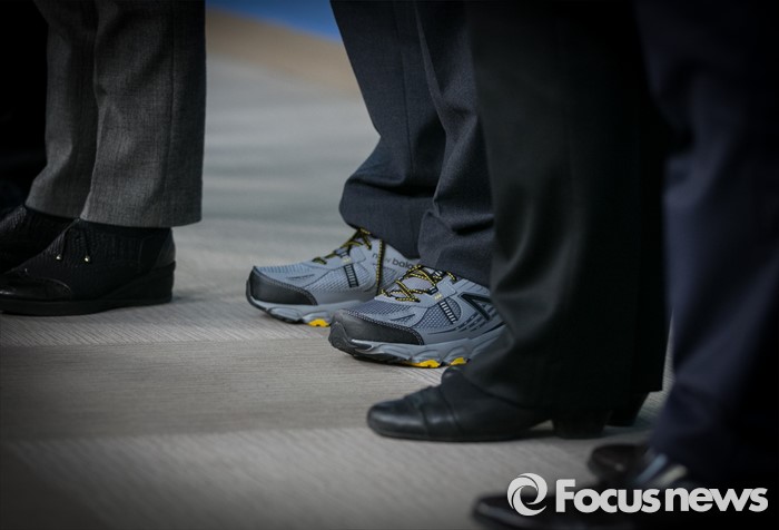 (서울=포커스뉴스) 박주민 더불어민주당 서울 은평갑 후보가 28일 오전 서울 여의도 국회 정론관에서 열린 20대 총선 출마 기자회견에 운동화를 신고 자리하고 있다.
