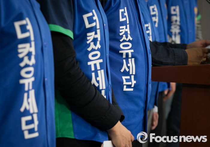 (서울=포커스뉴스) 더불어민주당에서 공천 탈락한 정청래, 김광진, 장하나 의원과 김빈 청년 비례대표 후보, 이동학 예비후보 등으로 구성된 '더컸유세단'이 28일 오전 서울 여의도 국회 정론관에서 출범 기자회견을 하고 있다.