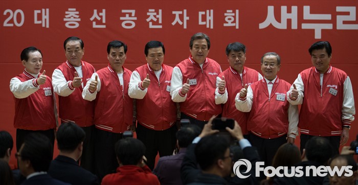 (서울=포커스뉴스) 28일 오후 서울 여의도 국회 의원회관에서 열린 새누리당 20대 총선 공천자대회에 참석한 전북 지역 후보들과 지도부가 기념촬영을 하고 있다.