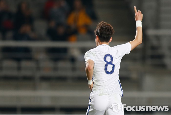 (고양=포커스뉴스) 28일 오후 경기 고양종합운동장에서 열린 올림픽축구대표팀 2차 평가전 대한민국과 알제리의 경기에서 한국 이창민이 선제골을 넣고 세리머니를 하고 있다.
