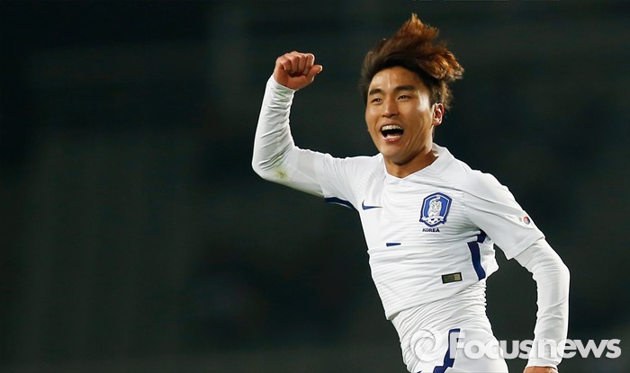 (고양=포커스뉴스) 28일 오후 경기 고양종합운동장에서 열린 올림픽축구대표팀 2차 평가전 대한민국과 알제리의 경기에서 한국 문창진이 후반전 추가골을 넣고 세리머니를 하고 있다.