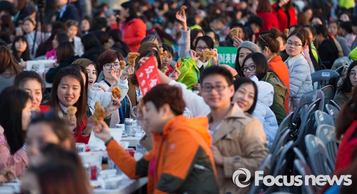 (인천=포커스뉴스) 28일 오후 인천 중구 월미 문화의 거리에서 중국 아오란 그룹 임직원 4500명이 치맥파티를 즐기고 있다.