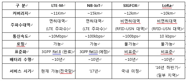 KT가 전국망 서비스 상용화를 개시한 ‘LTE-M’은 소물인터넷에 특화된 글로벌 표준 네트워크 기술로 시그폭스(SIGFOX)나 로라(LoRa)와 같은 다른 소물인터넷 기술에 비해 커버리지나 안정성 측면에서 우수하다는 평가를 받고 있다. 커버리지 측면에서 전국 서비스가 가능할 뿐 아니라 면허대역의 주파수를 사용하기 때문에 주파수 간섭으로 인한 통신품질의 저하가 없다. 또 사물과 양방향 통신을 할 수 있어 디바이스 제어가 가능하며, LTE망을 활용하기 때문에 로밍을 통한 글로벌 확장성도 가진다.