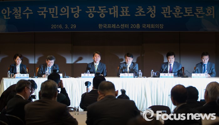 (서울=포커스뉴스) 20대 총선을 15일 앞둔 29일 오전 안철수 국민의당 상임공동대표가 서울 중구 한국프레스센터에서 열린 '안철수 국민의당 공동대표 초청 관훈토론회'에 참석해 토론을 하고 있다.