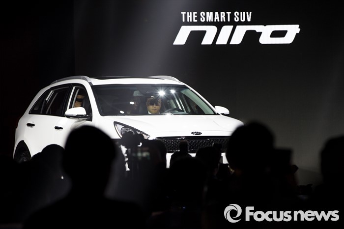 (서울=포커스뉴스) 29일 오전 서울 광진구 쉐라톤 그랜드 워커힐에서 기아차 친환경 소형 SUV '니로(NIRO)'가 공개돼고 있다.