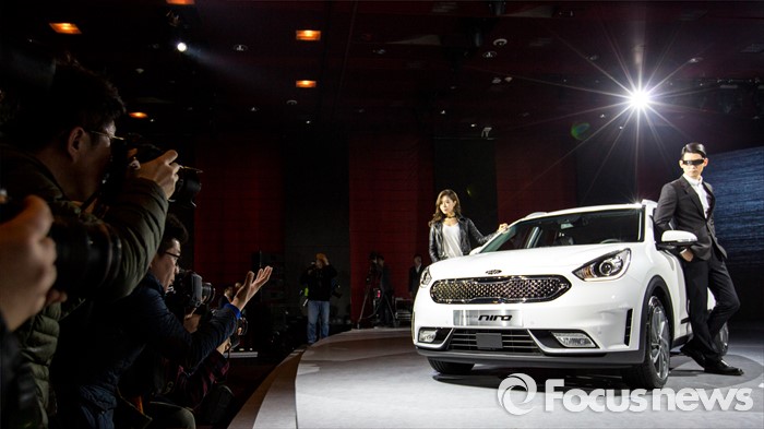 (서울=포커스뉴스) 29일 오전 서울 광진구 쉐라톤 그랜드 워커힐에서 기아차 친환경 소형 SUV '니로(NIRO)'가 공개돼고 있다.