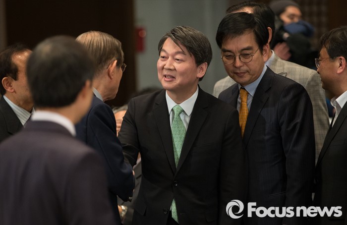 | △ 토론회에서 인사 나누는 안철수 |