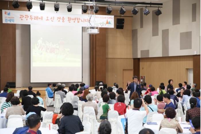 한편 관광두레사업의 시작을 알리는 '관광 두레짜기' 행사는 오는 30일부터 1박2일 동안 서울 영등포구 하이서울유스호스텔에서 열린다. 신규 PD교육, 신규 지역 지자체 공무원 워크숍, 연간 주민사업체 육성방향 공유, 관광두레 성과 공유, 기획력 향상 강연 등이 치러진다.관광두레 사업설명회 모습. <사진제공=문화체육관광부>