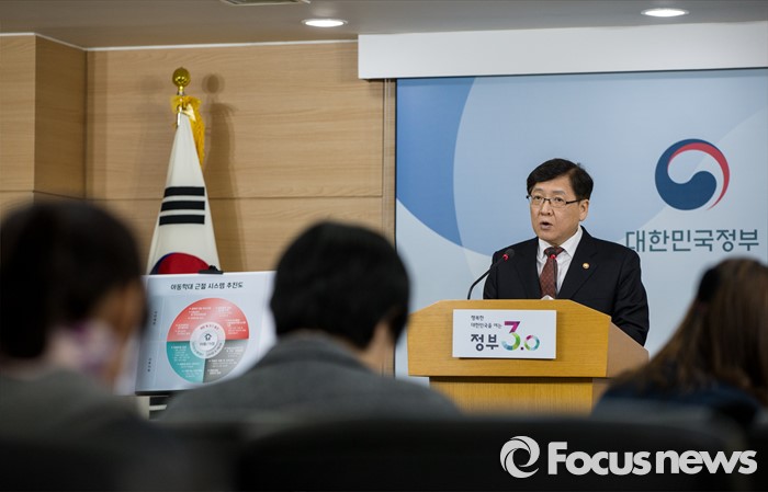 (서울=포커스뉴스) 29일 오전 서울 종로구 정부서울청사에서 정진엽 보건복지부 장관이 '관계부처 합동 아동학대 방지 대책'에 대해 발표하고 있다.
