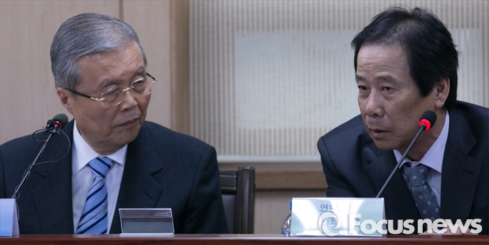 (서울=포커스뉴스) 김종인(왼쪽) 더불어민주당 비대위 대표가 29일 오후 서울 강남구 전국개인택시회관에서 열린 전국개인택시연합회 정책간담회에 참석해 유병우 연합회장과 대화하고 있다.