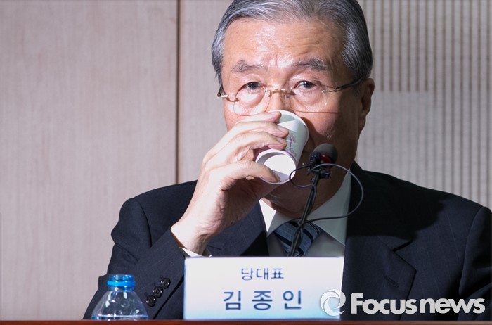 (서울=포커스뉴스) 김종인 더불어민주당 비대위 대표가 29일 오후 서울 강남구 전국개인택시회관에서 열린 전국개인택시연합회 정책간담회에 참석해 물을 마시고 있다.