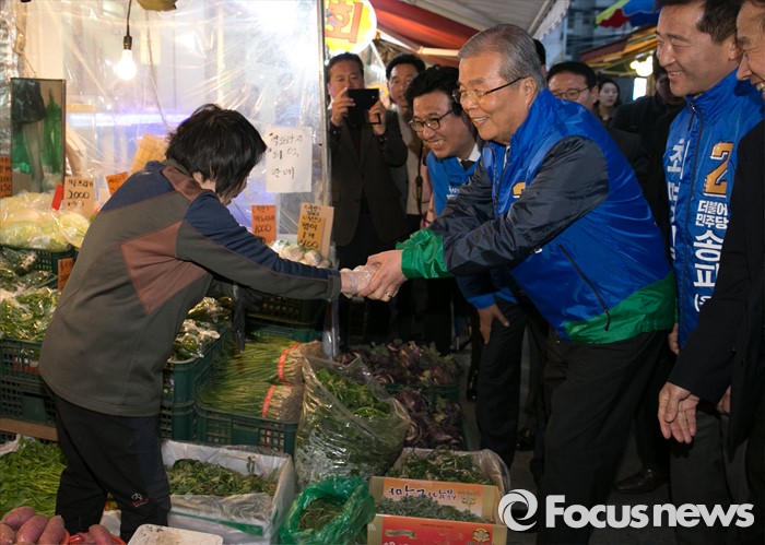 한편, 김종인 대표는 문재인 전 대표의 호남 유세 지원에 대해 "호남에 원하는 사람이 있으면 가겠지만 두고봐야 할 일"이라고 말했다.김종인 더불어민주당 비대위 대표가 29일 오후 서울 송파구 새마을시장을 방문해 상인들과 인사하며 지지를 호소하고 있다. 2016.03.29 박동욱 기자