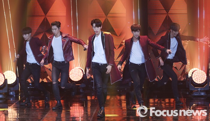 (서울=포커스뉴스) 29일 오후 서울 마포구 SBS프리즘 타워에서 열린 2016 '더쇼' 생방송에 참여한 아이돌그룹 크나큰 멤버들이 'Knock'의 무대를 선보이고 있다.